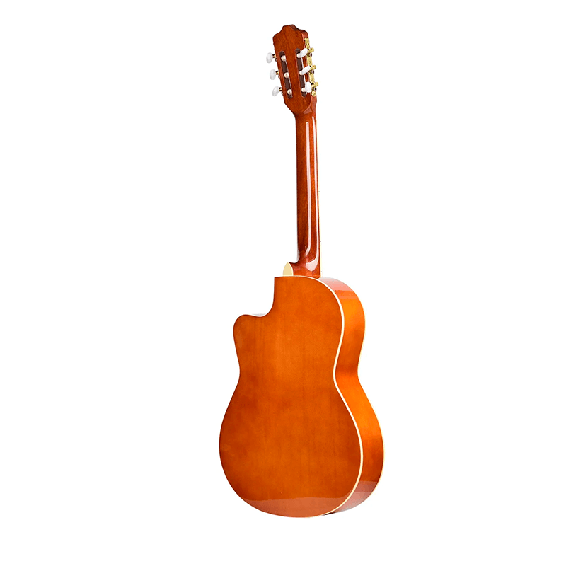 La guitarra acústica clásica de 39 pulgadas combina un diseño clásico con materiales de alta calidad. Su parte superior está hecha de abeto, que proporciona un sonido brillante y claro, mientras que la parte trasera y los laterales de tilo agregan calidez y equilibrio. La encuadernación de ABS brinda protección y un aspecto pulido.