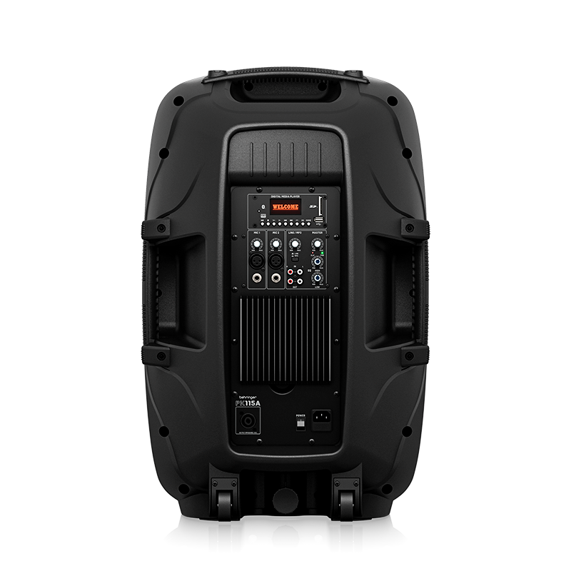 El PK115A es un altavoz de refuerzo de sonido PA supercompacto, excepcional, de 2 vías y 800 vatios de potencia con reproductor multimedia incorporado y Bluetooth* que es ideal para sonido en vivo, PA portátil, karaoke, monitor de cuña y aplicaciones de casas de culto.