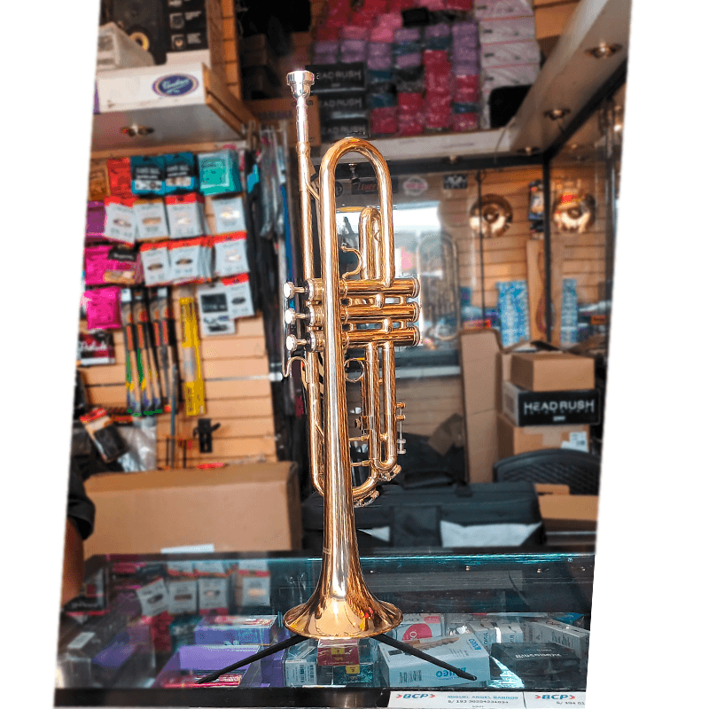 Trompeta dorada doble puente Incluye: Estuche